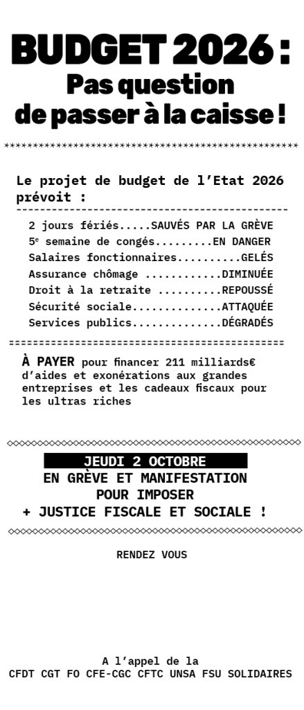 Nous espérons être encore plus nombreux que le 18 septembre à Tarbes, qui a mobilisé 5000 de personnes à la manifestation intersyndicale.
